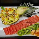 Det erbjuder en frukostbuffé dagligen. Det erbjuds diner i restaurangen Gardenia. Den traditionella baren finns på hotellet.